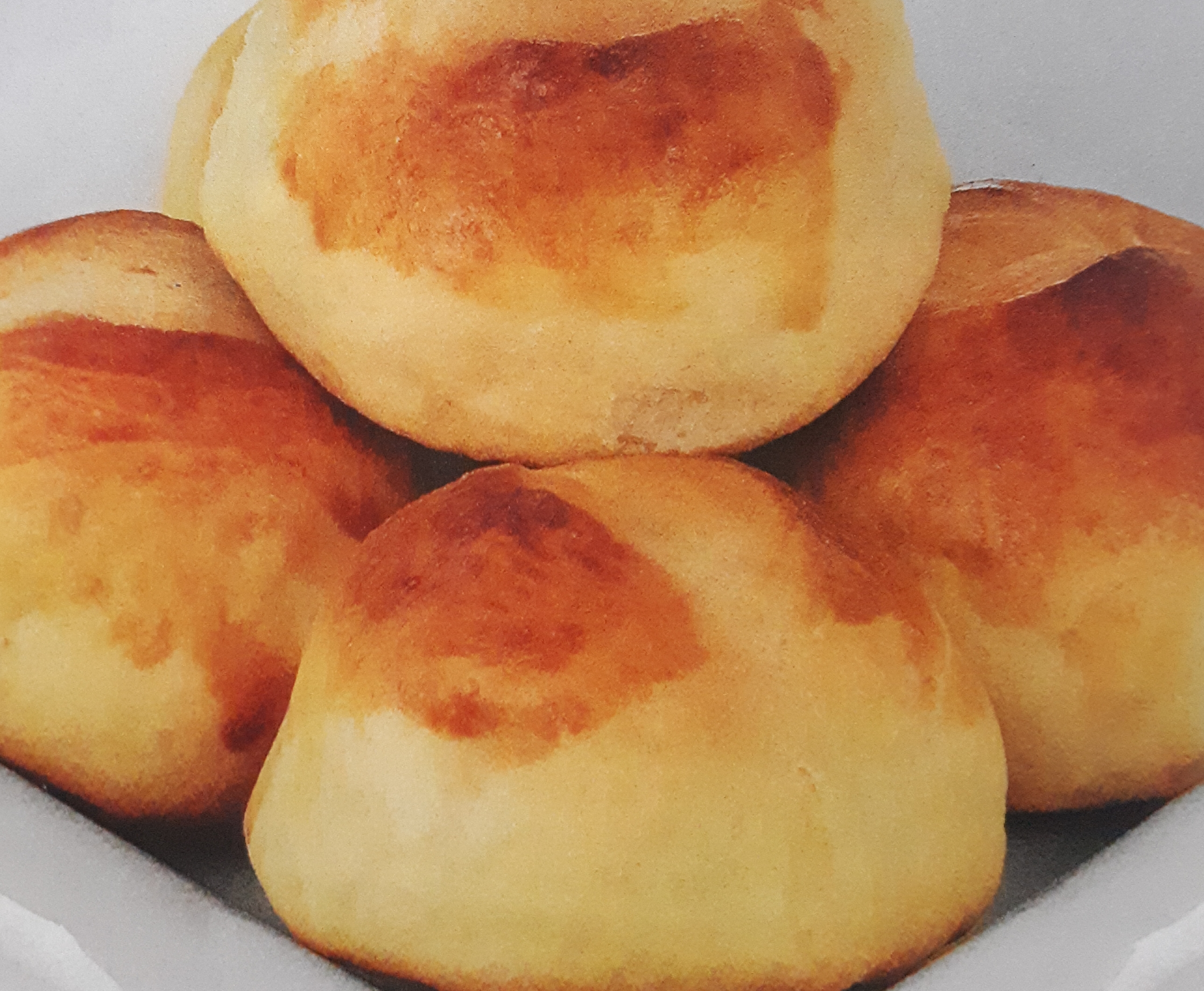 Modele pãezinhos e coloque em uma forma grande untada e enfarinhada, um ao lado do outro, deixando espaço entre eles.
